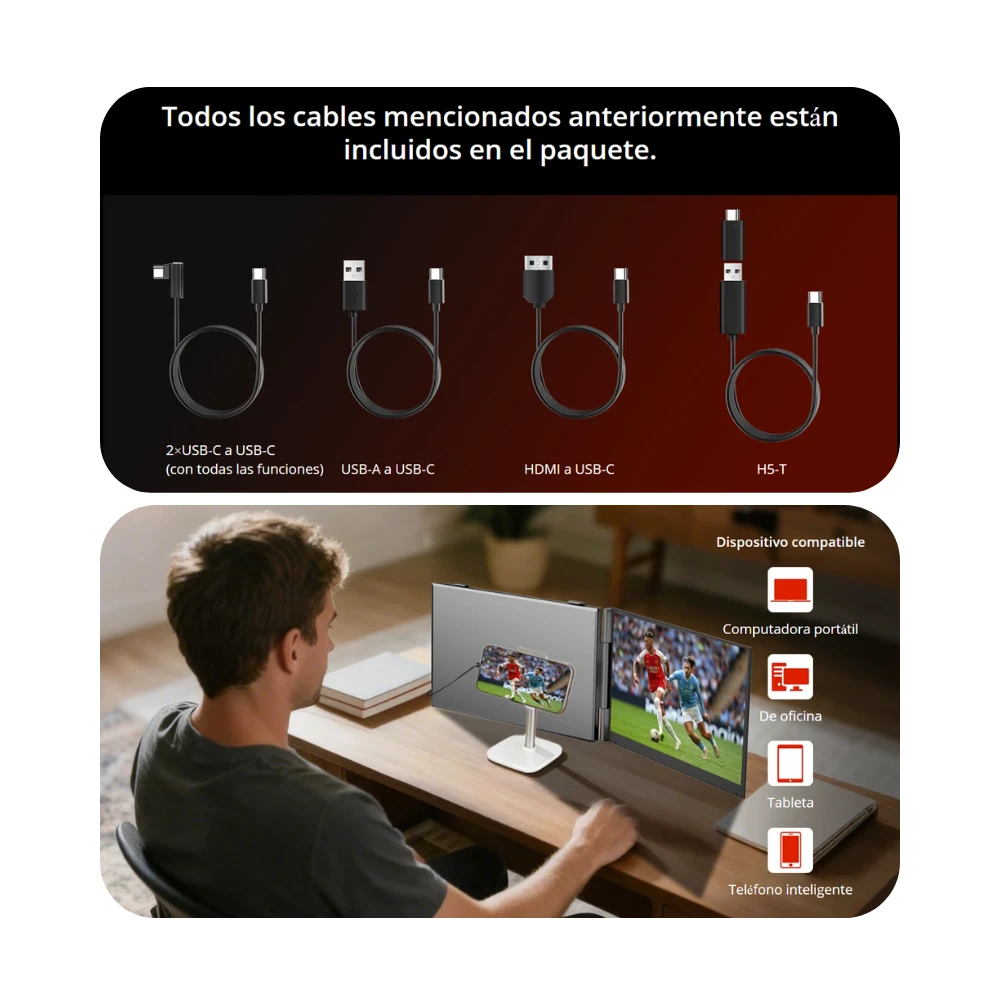 En bref, le DCM6 C'est une solution portable, pratique et universel Pour étendre votre espace de travail avec un deuxième ou un troisième écran, optimisez votre productivité, le télétravail, le montage vidéo ou le divertissement où que vous soyez.