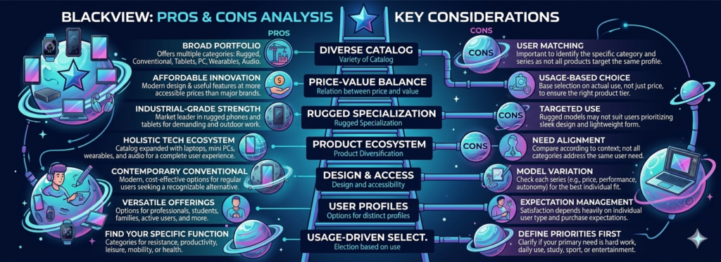 Blackview è oggi una scelta di riferimento per chi privilegia funzionalità e risparmio senza rinunciare all'innovazione. Tuttavia, con un catalogo così ampio, la chiave del successo sta nello scegliere la serie più adatta a ogni esigenza. Di seguito, riassumiamo i punti di forza che contraddistinguono il marchio e i dettagli da considerare per garantire un acquisto di successo.