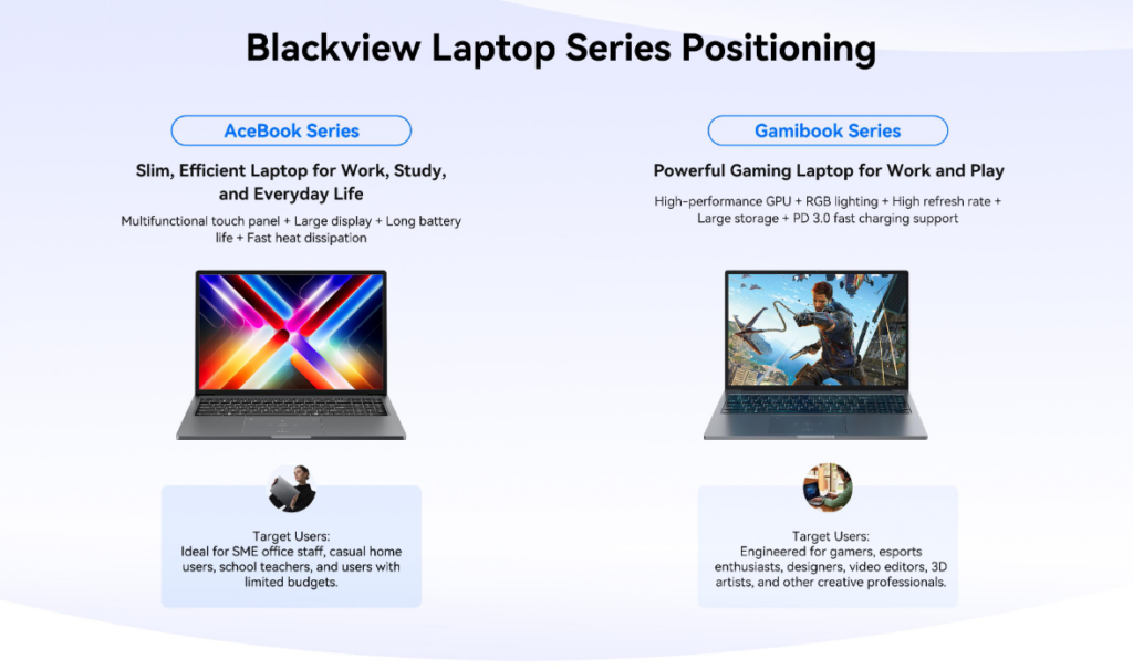 Blackview ha progettato la sua linea di laptop per offrire un'esperienza informatica completa, coniugando design moderno e funzionalità a prezzi competitivi. Questi dispositivi sono ideali sia per l'ambiente scolastico che professionale, rispondendo alle esigenze di chi necessita di uno strumento di lavoro affidabile e portatile.