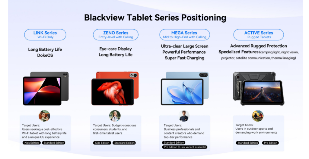All'interno di questa categoria, Blackview segmenta i suoi dispositivi in base a prestazioni, design e budget: