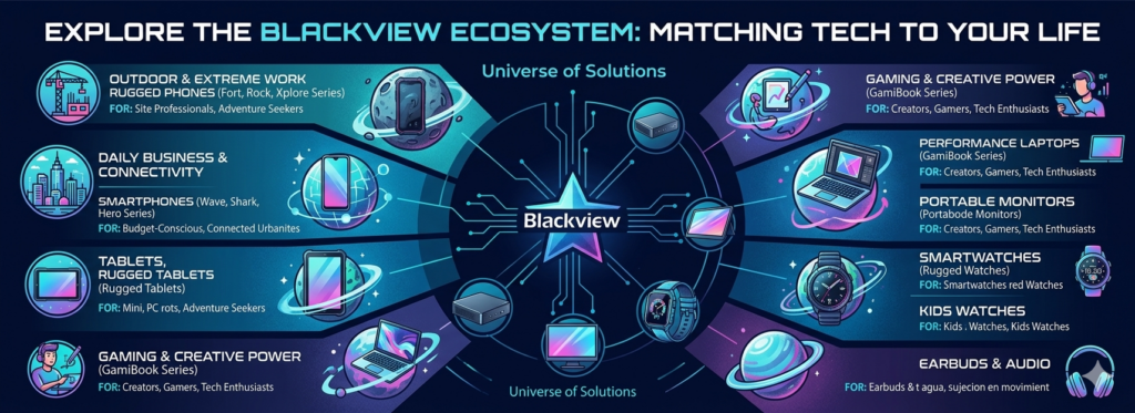 Grazie alla sua crescita costante, Blackview ha organizzato il suo catalogo in categorie ben definite per ogni tipologia di utente. Di seguito, analizziamo le linee di prodotto che compongono il suo attuale ecosistema e le soluzioni che ciascuna offre.