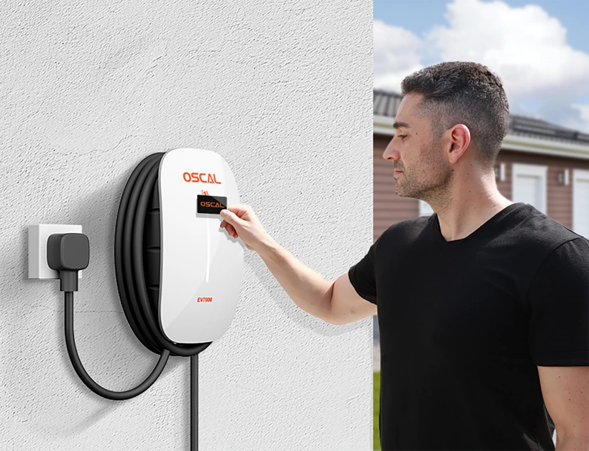 Lui OSCAL EV7000 è un caricabatterie per veicoli elettrici residenziali progettato per offrire prestazioni, sicurezza e controllo completi. Con una potenza massima di 7 kW e un'uscita di 32 A, è possibile ricaricare una batteria da 50 kWh in circa 7 ore, due volte più velocemente rispetto ai caricabatterie standard da 3,5 kW.