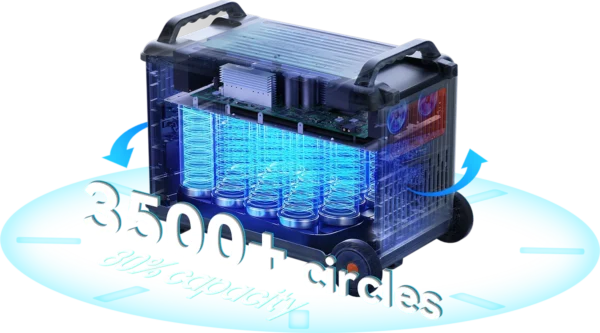 Centrale elettrica portatile con batteria LiFePO4 da 3600 Wh, potenza in uscita di 3600 W e piรน porte AC, USB e DC.