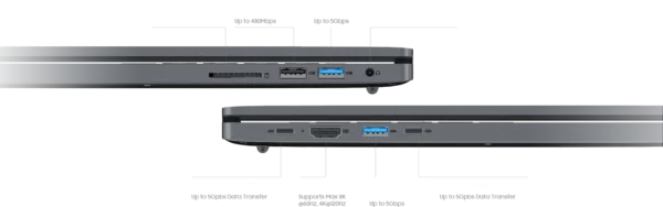 Dankzij hun 16 GB DDR5 op 4800 MHz, uw SSD 512GB uitbreidbaar tot 2 TB en zijn batterij van 57 Wh met 65 W snelladen, De GamiBook 8 biedt een batterijduur en snelheid voor gebruik de hele dag. De metalen behuizing, het geavanceerde koelsysteem, het volledige toetsenbord en de diverse poorten (USB-C, HDMI 2.1, USB 3.x, TF-kaart, enz.) maken het een veelzijdige tool voor studie, kantoorwerk of creatieve projecten.