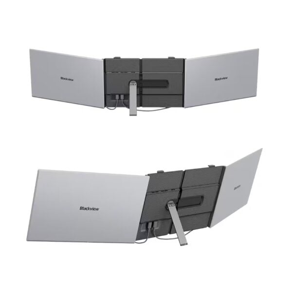 Ele Blackview DCM8 Transforme seu laptop em uma estação de trabalho multitarefa completa onde quer que você esteja. Com duas telas IPS Full HD de 15,3 polegadas com 300 nits de brilho E sua proporção de tela 16:9 oferece uma área de visualização expandida, perfeita para trabalhar com várias janelas, editar documentos, programar ou consumir conteúdo multimídia. Seu design dobrável é fino (aproximadamente 4,5 mm de espessura) e quase... 1 kg Isso o torna extremamente portátil, ideal para trabalhadores que se deslocam frequentemente, estudantes ou criativos.