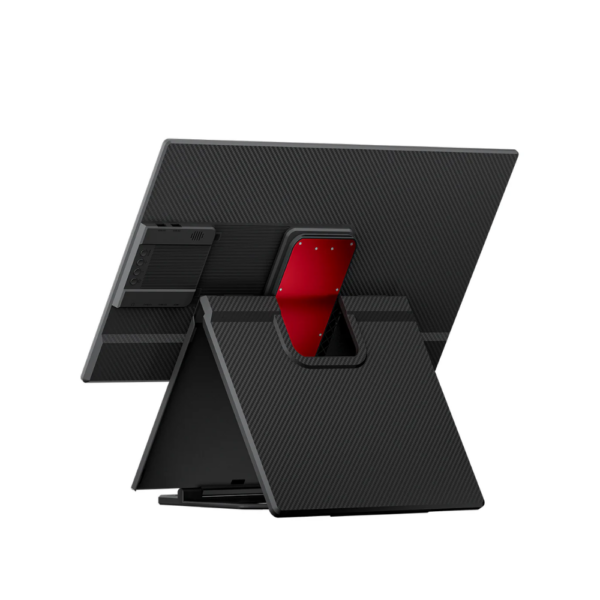 Seu design fino e dobrável Inclui um suporte protetor. próximo de 0°, que envolve completamente a tela e facilita o transporte graças à sua alça integrada. Também apresenta Fixação magnética estável e ajustável, Permite um ajuste de altura suave para uma visualização ergonômica. Compatível com Suportes VESA 75 × 75 mm, Adapta-se facilmente a qualquer ambiente profissional ou doméstico.